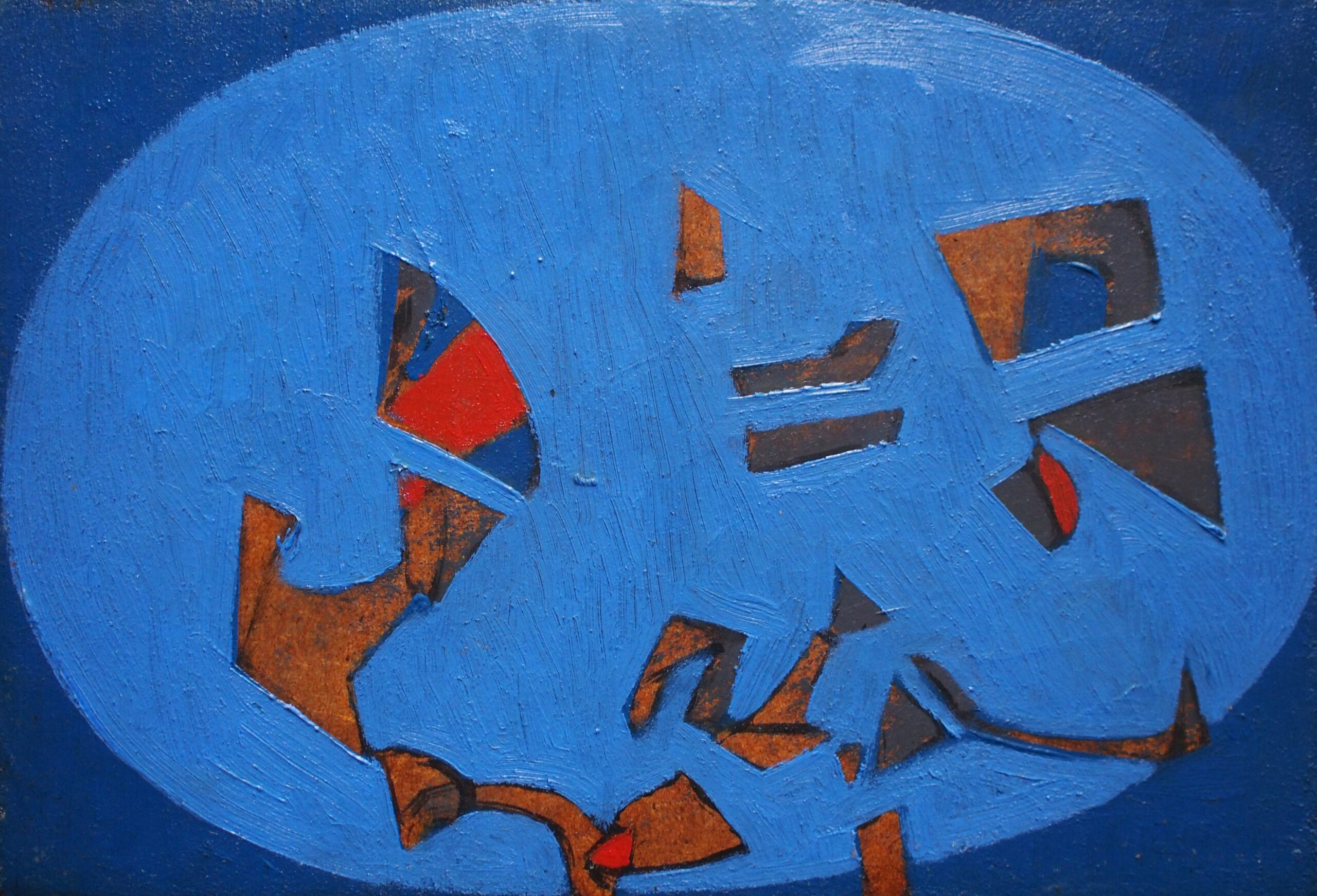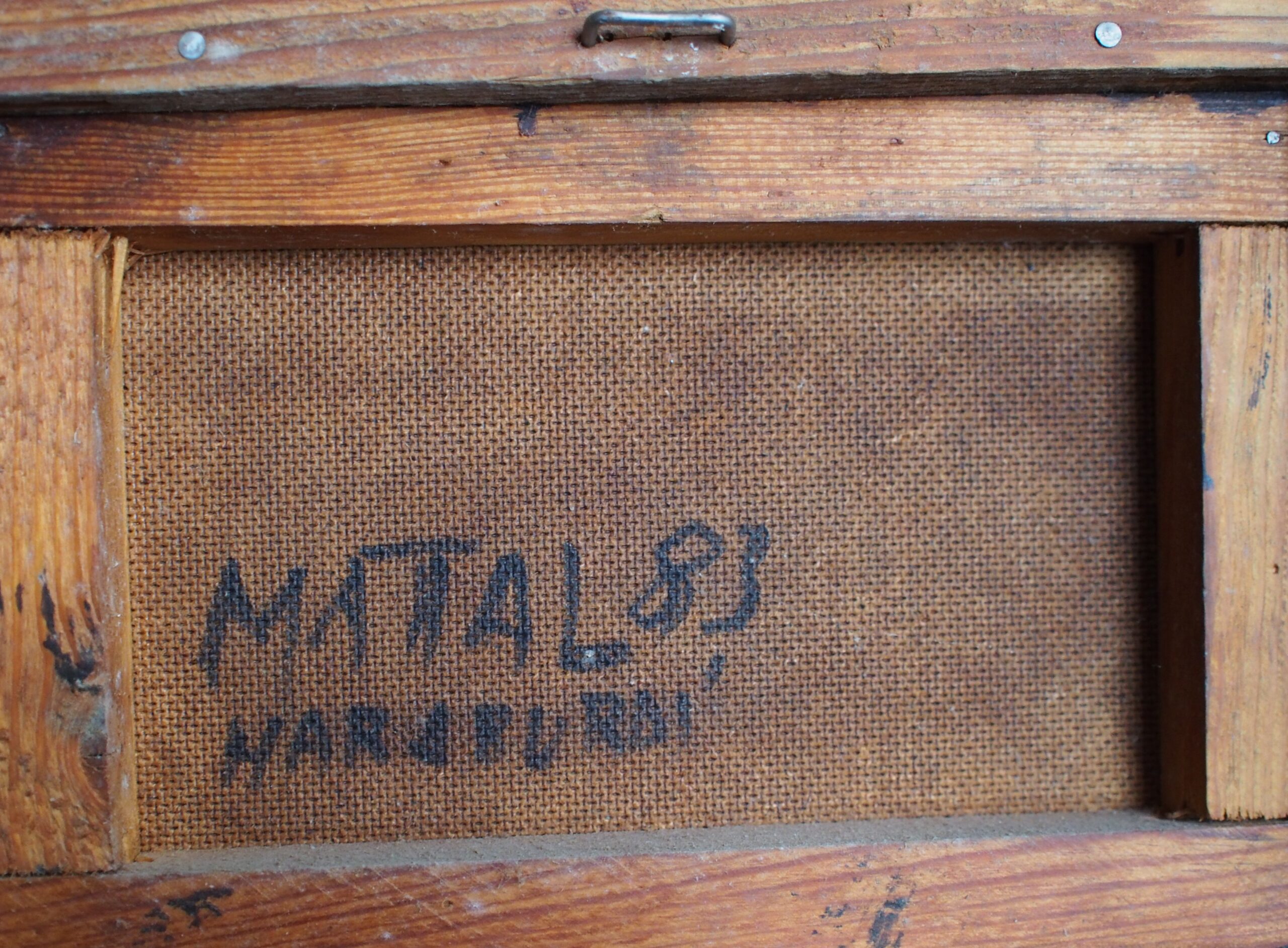 Haraburdí, olejomalba na sololitu o rozměrech 17×25 cm, s rámem 27×35 cm, signováno na zadní straně, datováno 1983.