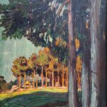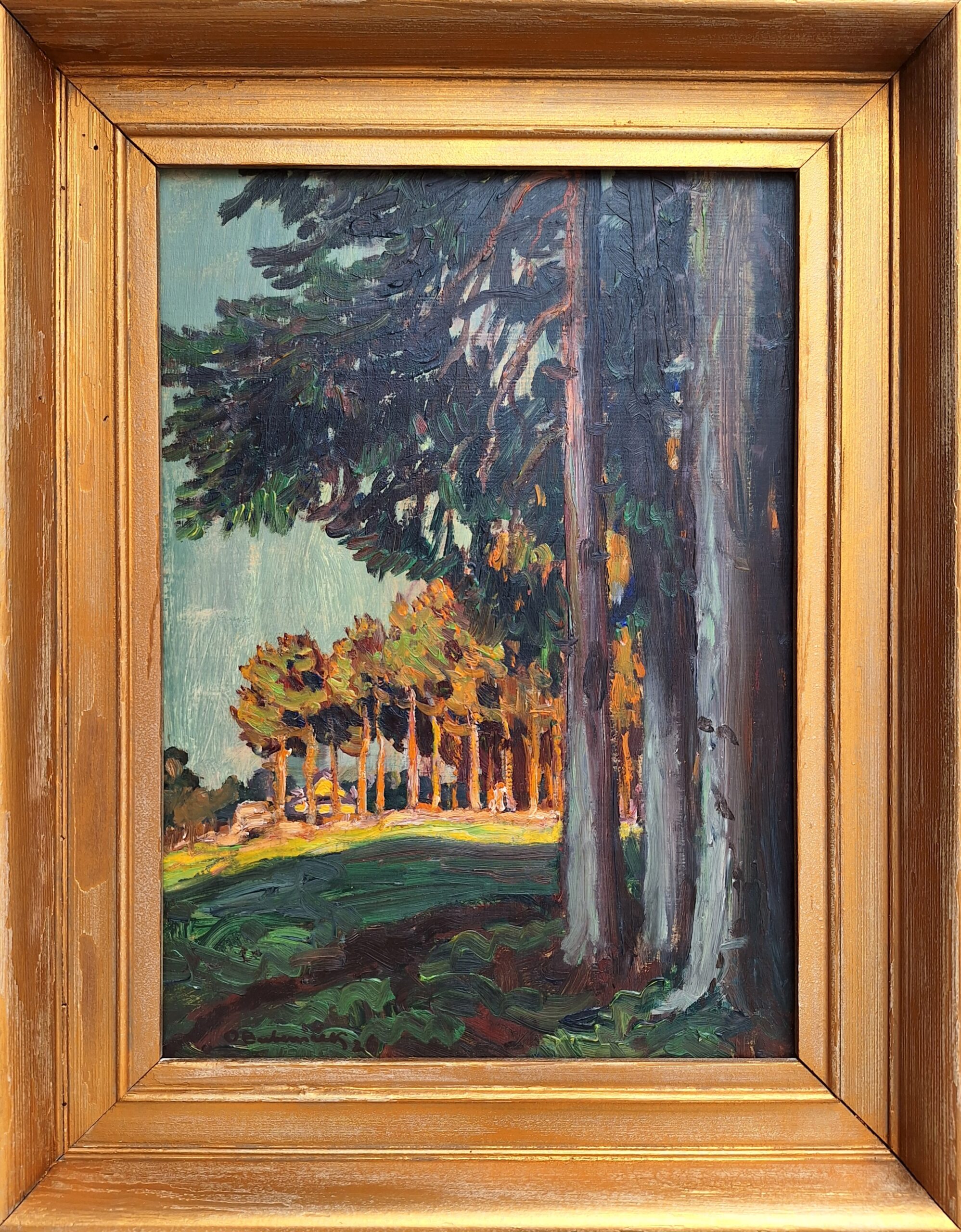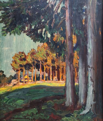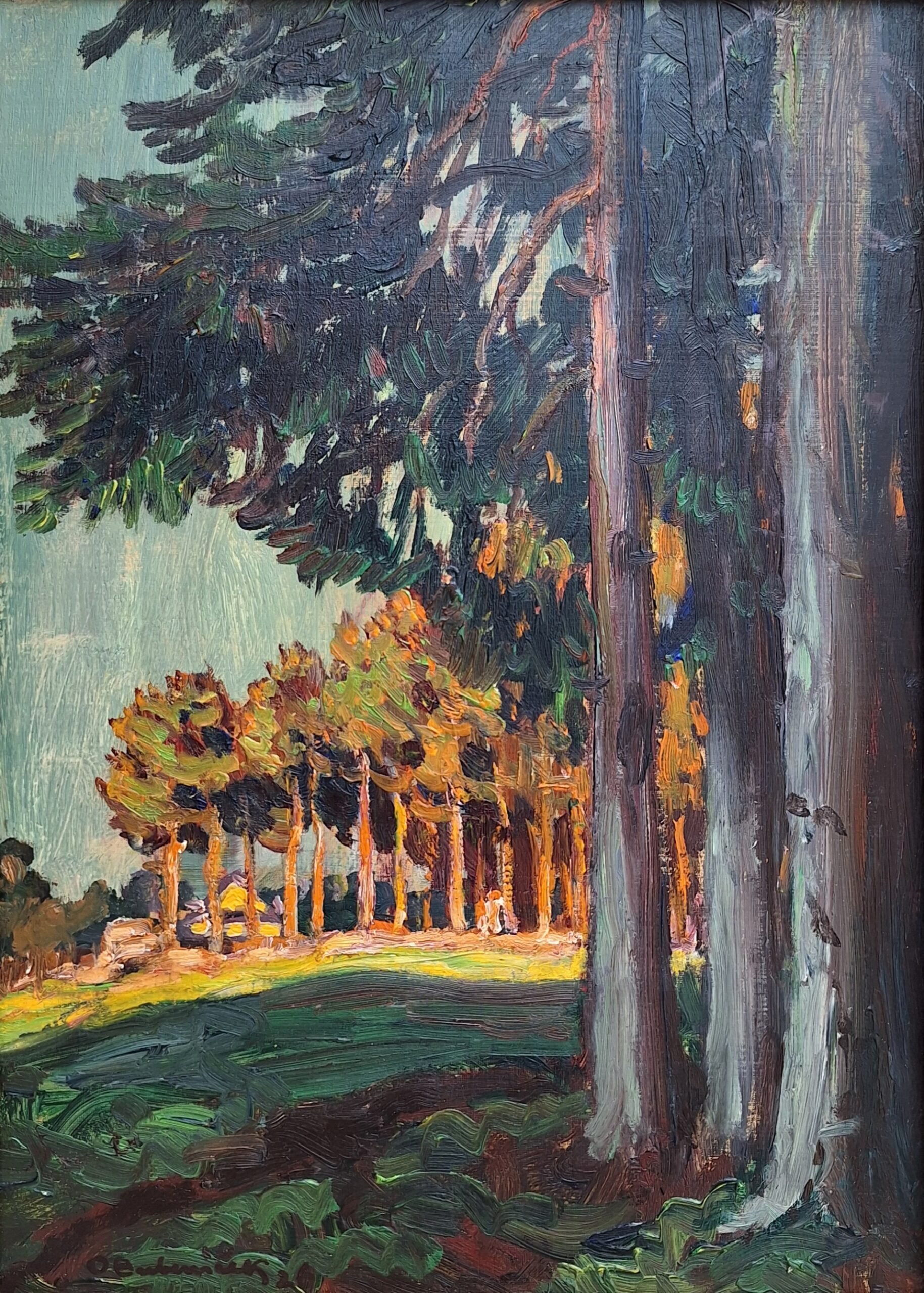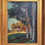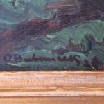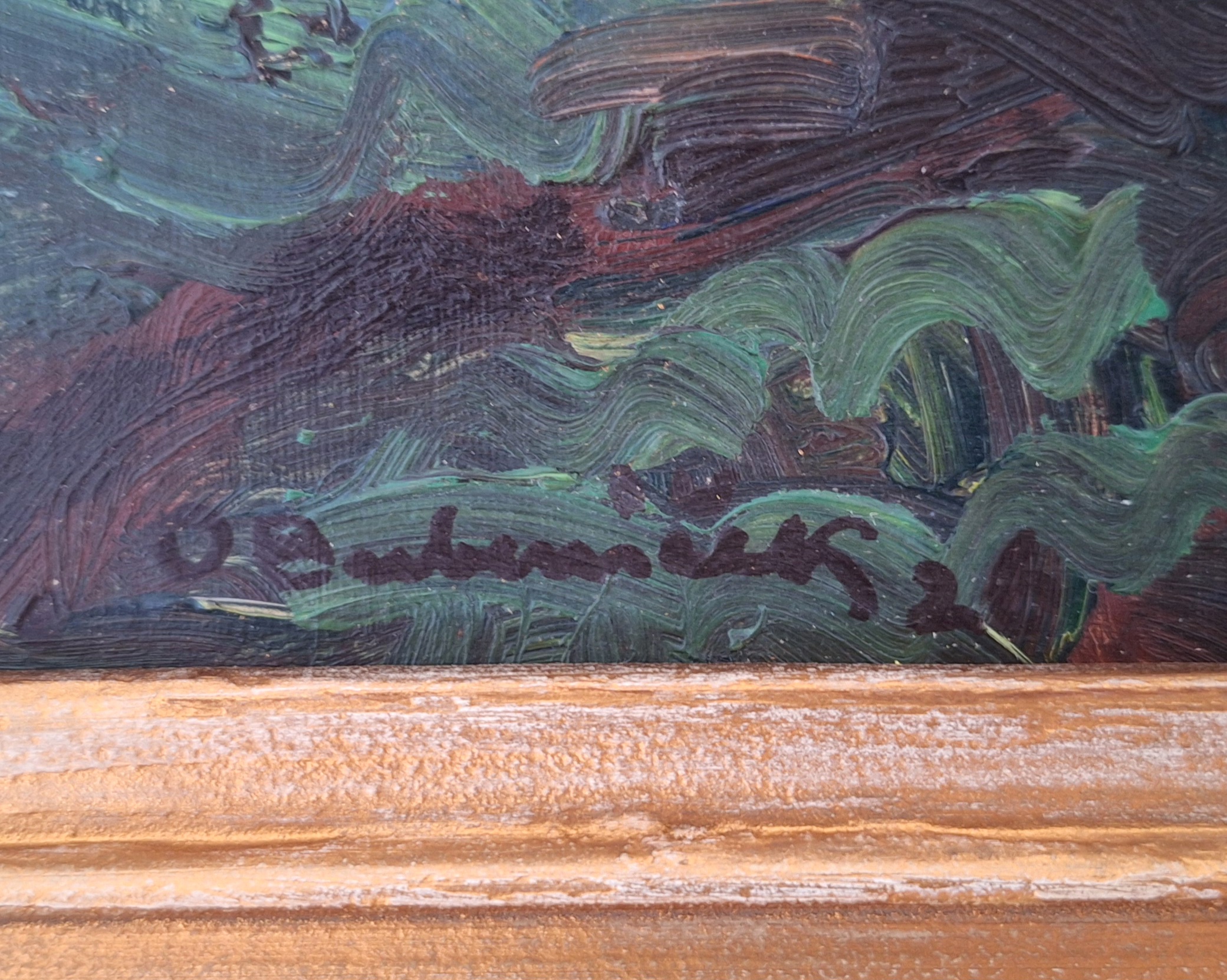 U Moravské Svratky, olejomalba na kartonu o rozměrech 35×25 cm, s rámem 42×32 cm, signováno, datováno 1926.